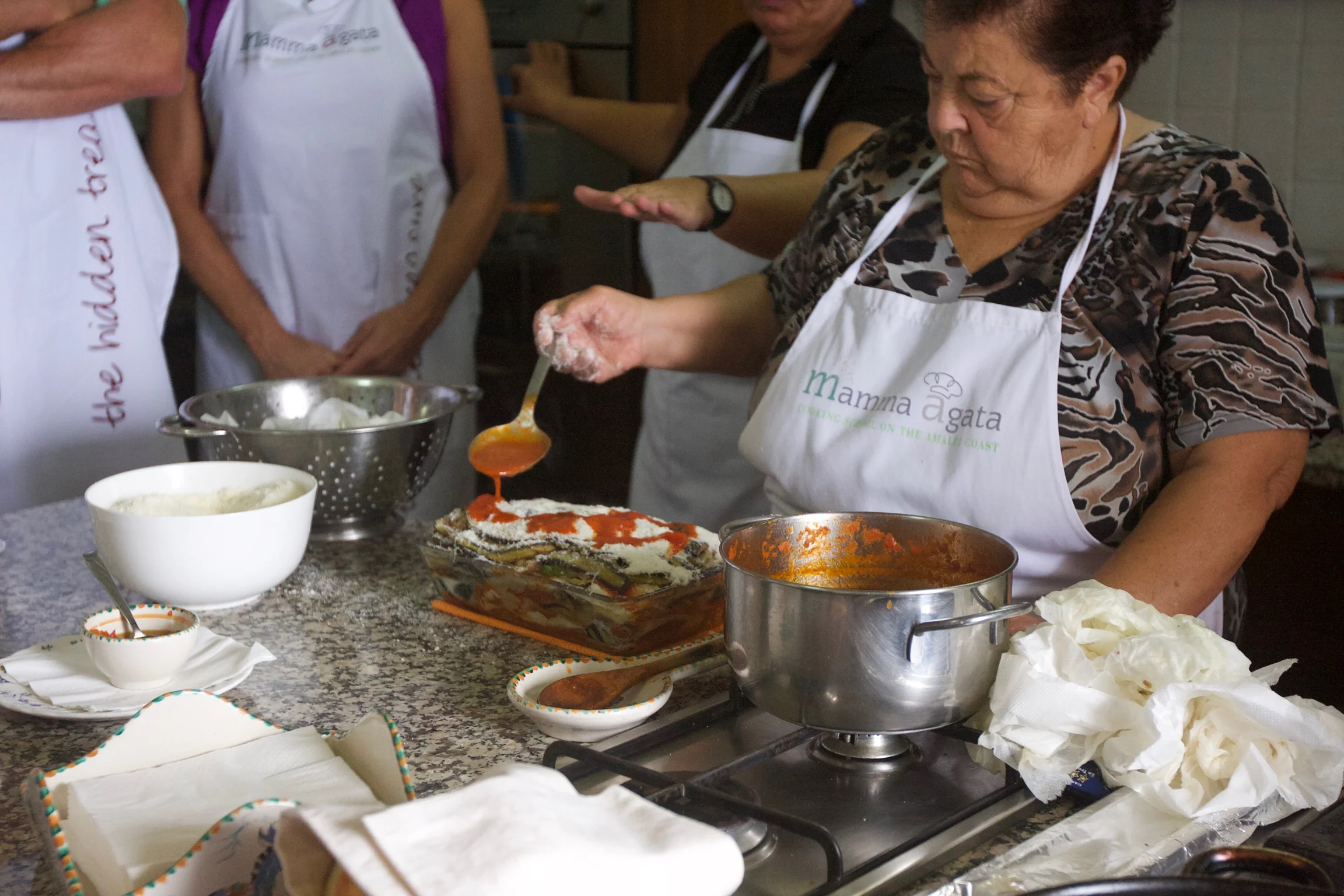 Here is Mamma Agata making the eggplant parmigiana also known as “the bambino”